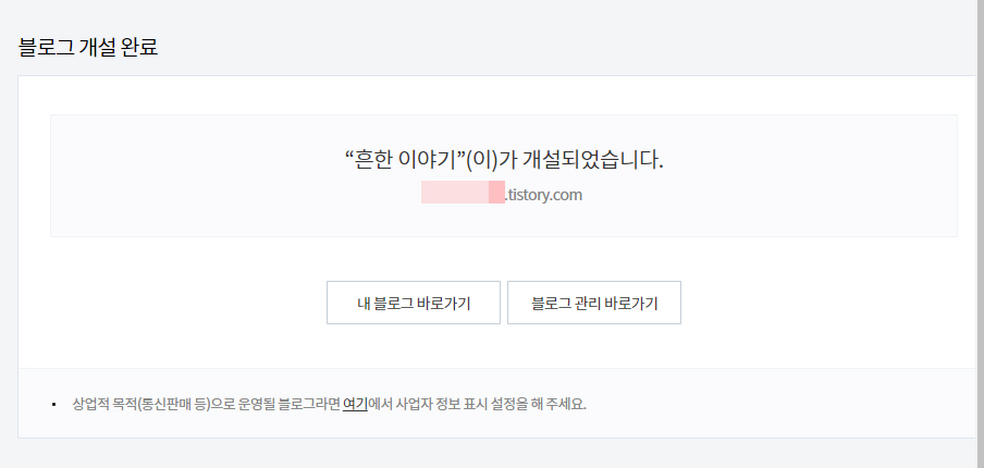 고유한 블로그 주소를 입력하고 개설하기를 클릭하면 새로운 블로그가 만들어집니다.