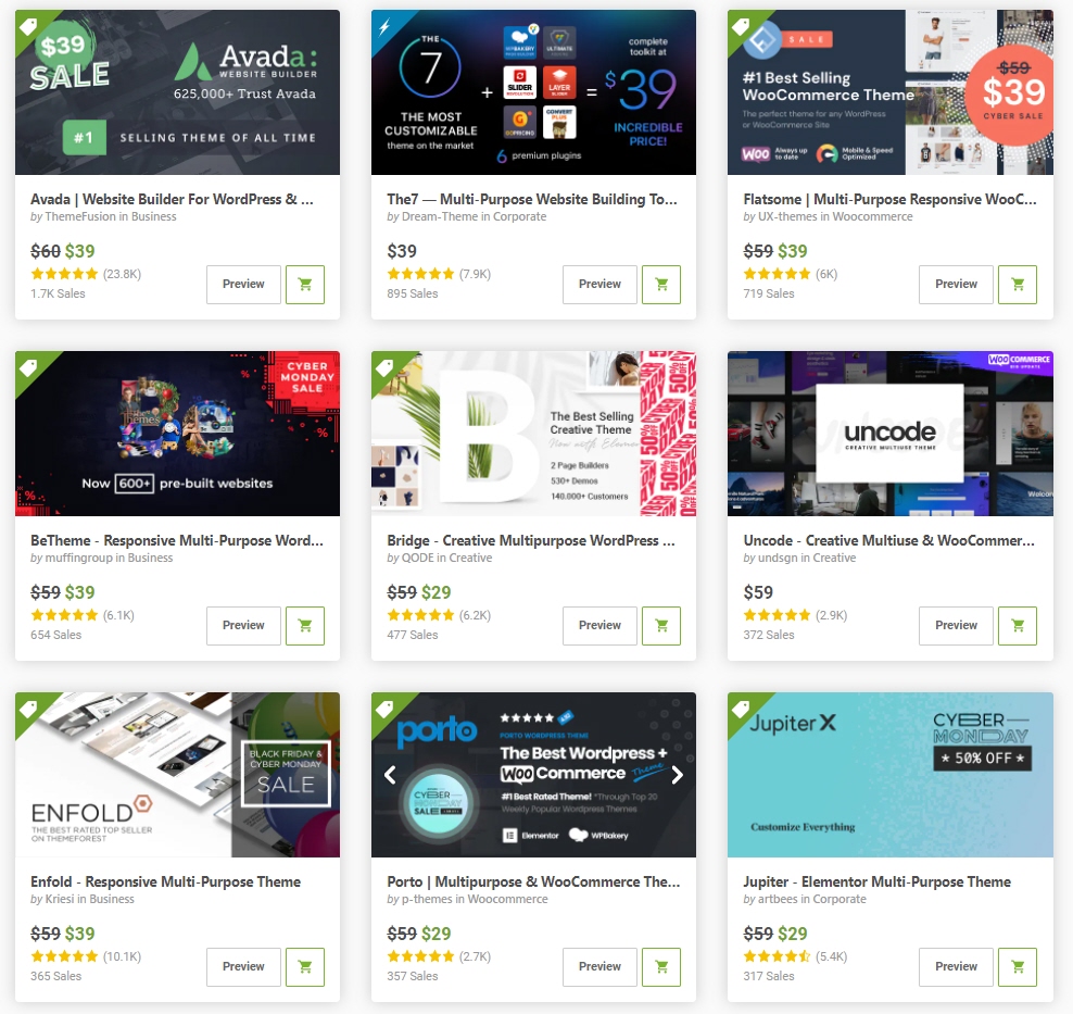 인기 워드프레스 테마 블랙프라이데이 세일: Avada, Enfold, Newspaper, Divi 등