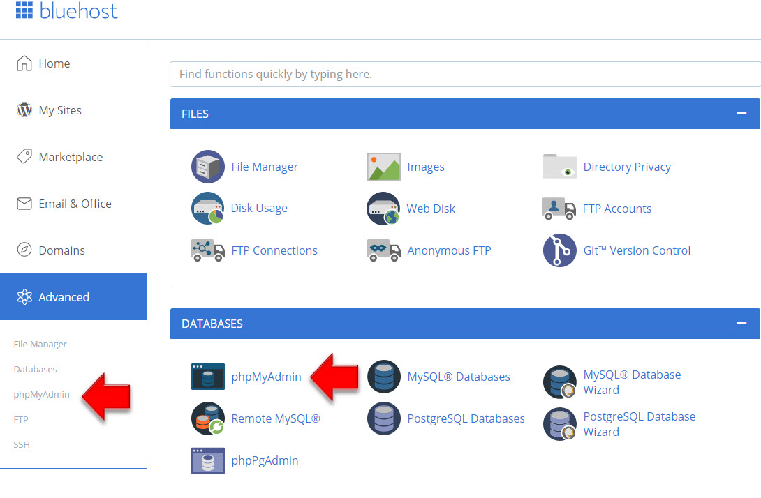 해외호스팅 중 하나인 블루호스트에서는 cPanel을 제공합니다. 처음 씨패널을 접하면 어렵게 느껴질 수 있지만, 익숙해지면 매우 편리합니다. Bluehost에서는 phpMyAdmin 등 자주 사용하는 툴을 쉽게 접근할 수 있도록 배려하고 있습니다. 워드프레스 등을 사용하면서 데이터베이스에 접근해야 하는 경우 phpMyAdmin 툴을 이용할 수 있습니다.