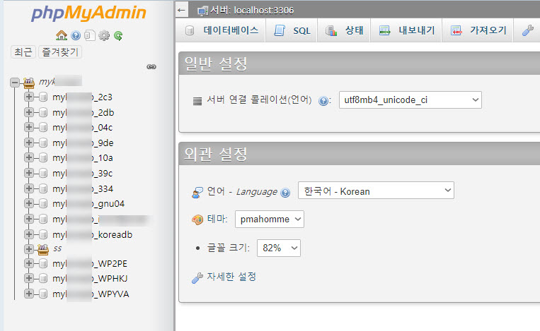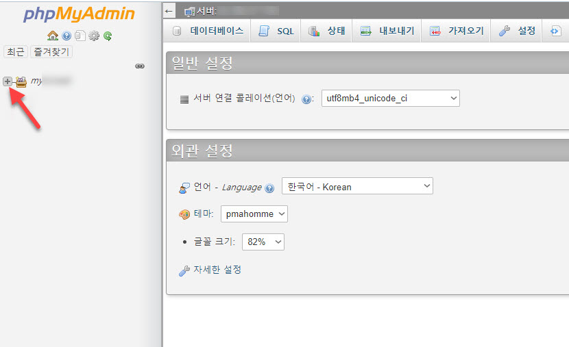 원하는 DB 이름을 클릭하여 데이터베이스 관련 작업을 수행할 수 있습니다.