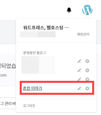 오른쪽 상단의 로고 아이콘을 클릭하면 방금 만든 블로그가 추가되어 있는 것을 확인할 수 있습니다.