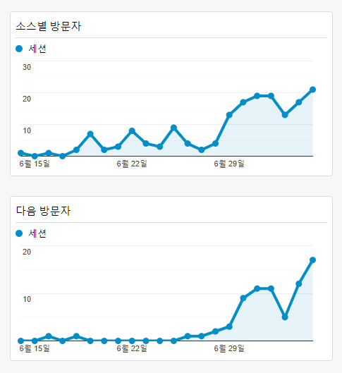 예상은 하고 있었지만 이 블로그에서는 아직 유의미한 방문자 유입이 이루어지지 않고 있습니다. 1~2주 정도 더 글을 작성하면서 방문자 추이를 살펴볼 생각입니다. 그래도 방문자 유입이 증가하지 않으면 이슈성 키워드를 조금씩 시도해보는 것도 고려하고 있습니다.