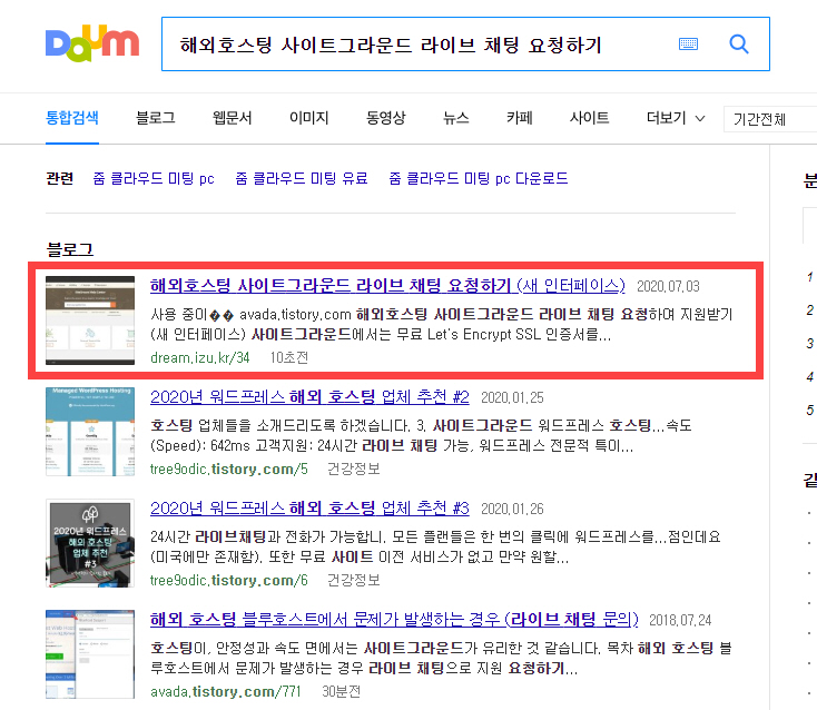 다행히 글을 발행하면 다음 검색엔진의 블로그 탭에 잘 노출되고 있습니다.