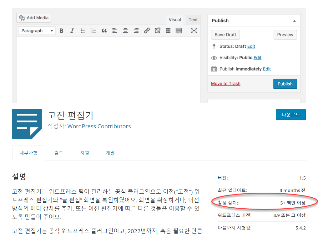 고전 편집기는 현재 500만 개가 넘는 워드프레스 사이트에 설치되어 사용 중입니다.