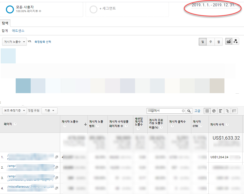 구글 애널리틱스에서 검색해보니 해당 글 URL과 함께 amp UrL 등도 함께 검색되네요. 지금은 지난 이슈이기 때문에 수익이 확 줄어들었지만, 구글에서는 한 번 노출되면 잘 내려오지 않는 특성이 있기 때문에 장기적인 블로그 운영을 목표로 한다면 구글을 타깃으로 워드프레스 블로그를 운영하는 것도 고려해볼 수 있을 것 같습니다.