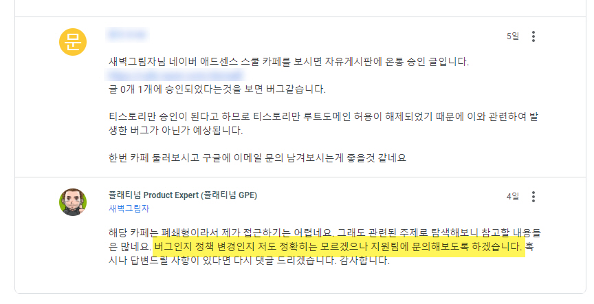 버그로 판명이 된다면 상황이 조금 복잡해질 것 같습니다. 그 사이에 승인을 받은 블로그에 대해 어떻게 처리해야 하는 문제가 발생합니다. 이번 기회에 10개 이상 티스토리 블로그에 대하여 승인을 받았다는 블로거들도 눈에 띕니다.