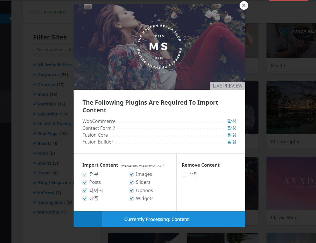 워드프레스 아바다 테마 데모 설치하기