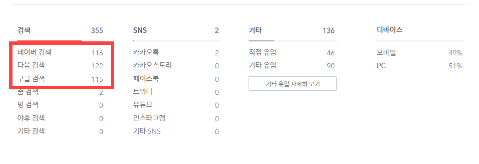 지난주 검색엔진 방문자 유입을 보니 다음, 네이버, 구글에서 비슷하게 유입되고 있는 것을 확인할 수 있었습니다.